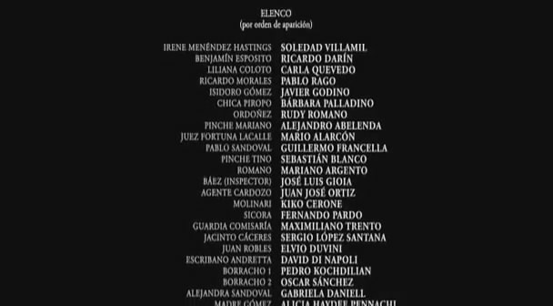 Interpretación: Ricardo Darín (Benjamín Espósito), Soledad Villamil (Irene Menéndez), Pablo Rago (Ricardo Morales), Javier Godino (Isidoro Gómez), Guillermo Francella (Sandoval).